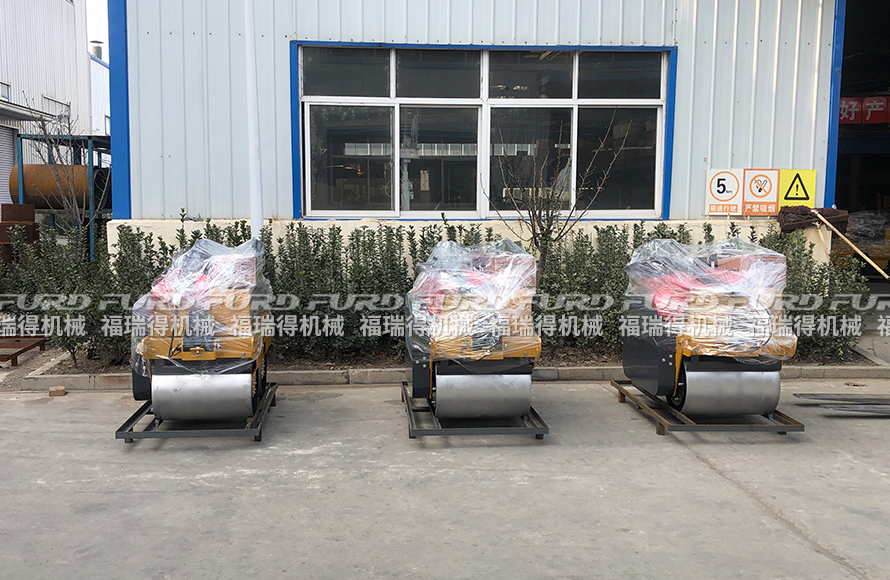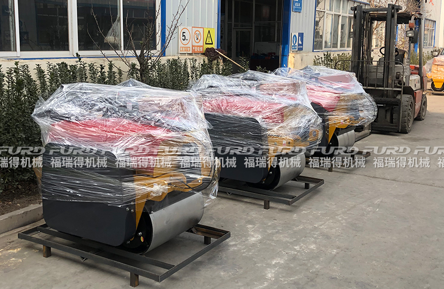 1月26日 福瑞得機(jī)械5臺手扶雙輪壓路機(jī)打包裝箱出口南非。